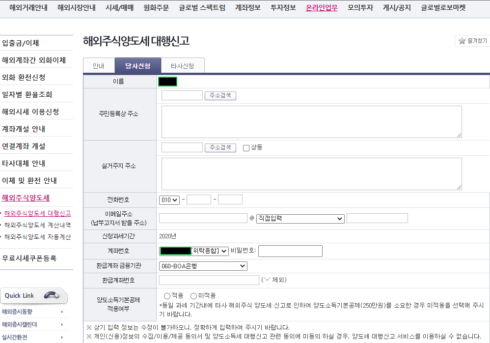 해외주식의 온라인 업무쪽에 보면 해외주식양도세 라고 있음.