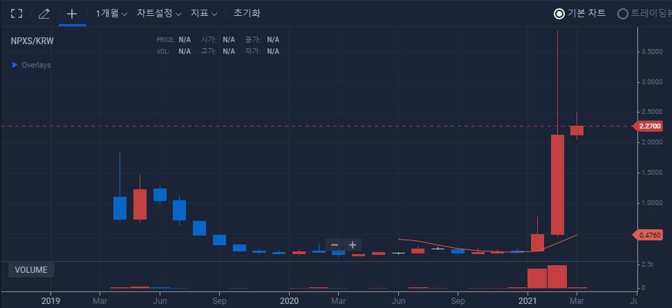 오래동안 0.1~0.2에서 놀다가 최근에 0.4~0.5대로 펌핑(21/1/9)후 2차펌핑(21/2/9)으로 1.초반 유지
