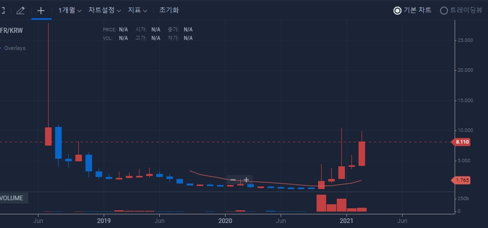 작년 (20/10/5) 미친 펌핑을 시작하면서 고가 4.47, 고가 10.5(20/11/30), 고가 9.9(20/11/15)