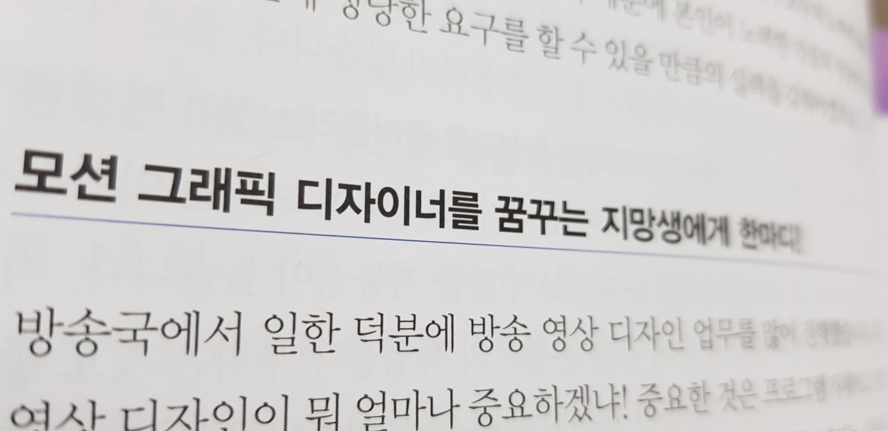 모션그래픽 디자이너를 준비하는 이가 현업에서 일하고 있는 선배에게