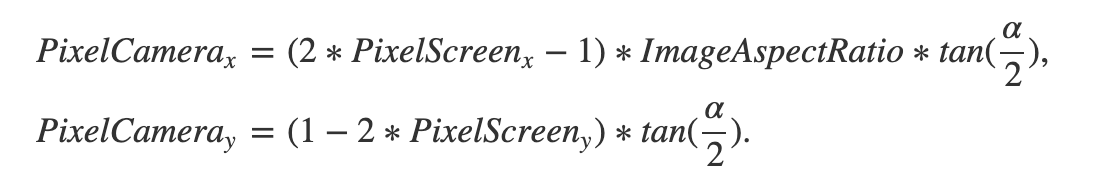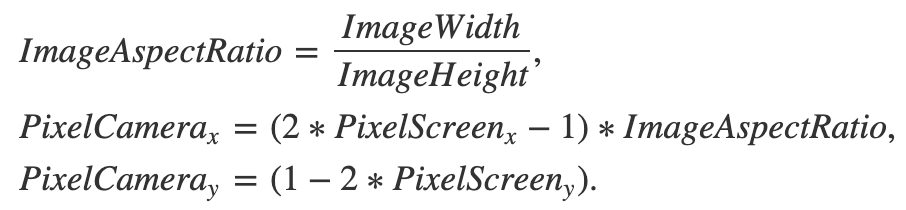 float Px = (2 * ((x + 0.5) / imageWidth) - 1) * tan(fov / 2 * M_PI / 180) * imageAspectRatio;