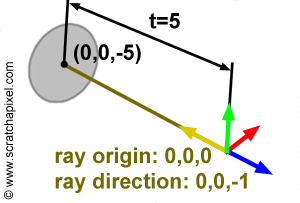 광선은 (0,0,-5)에서 교차하며 이러한 예시가 그림 3에 나와있다.