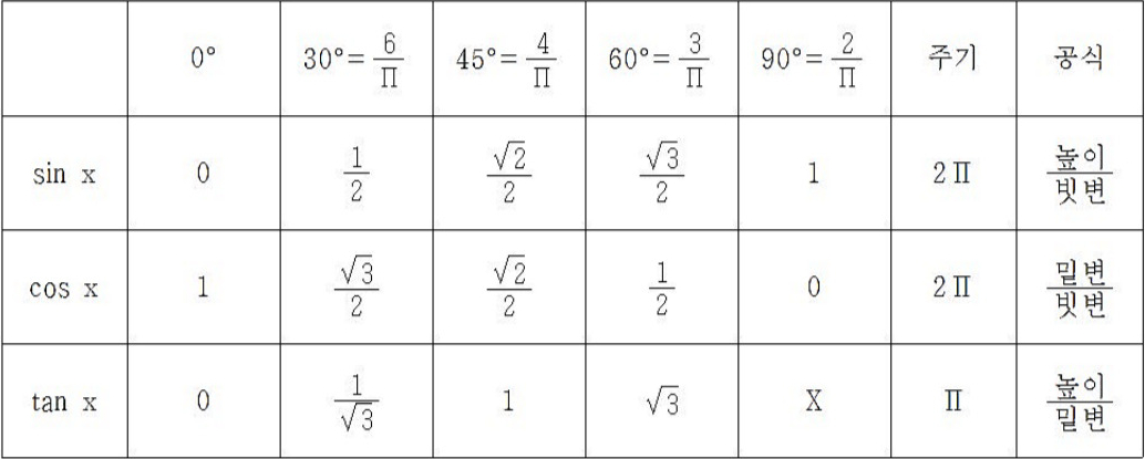 | rad x 180 / π = 도(°) | 도(°) x π / 180 = radian |