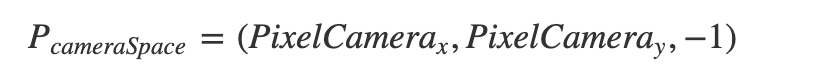 이를 통해 카메라의 이미지 평면위에 있는 이미지의 픽셀의 위치 P를 얻을 수 있다.