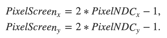 NDC 공간에서 Screen 공간으로 리매핑 하기 위해 (x,y)*2-1 해준후 y축은 -1을 곱해준다.