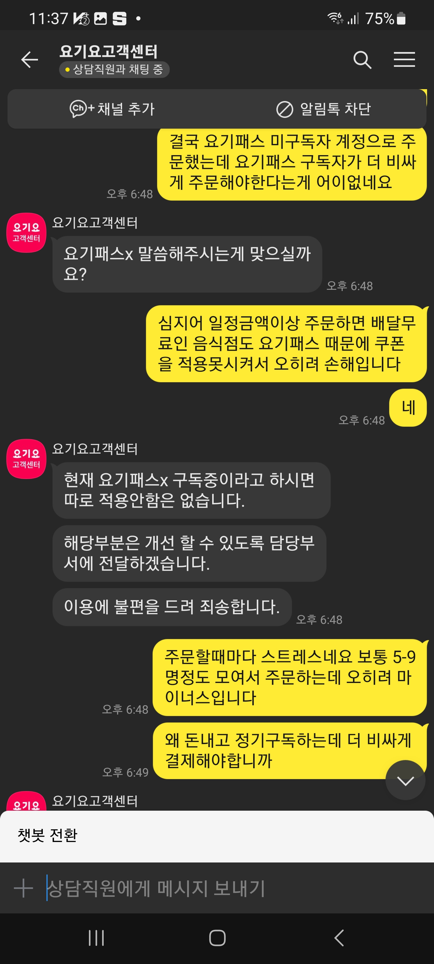 요기패스X의 버프를 받아 배달요금이 할인되서 좋은데...