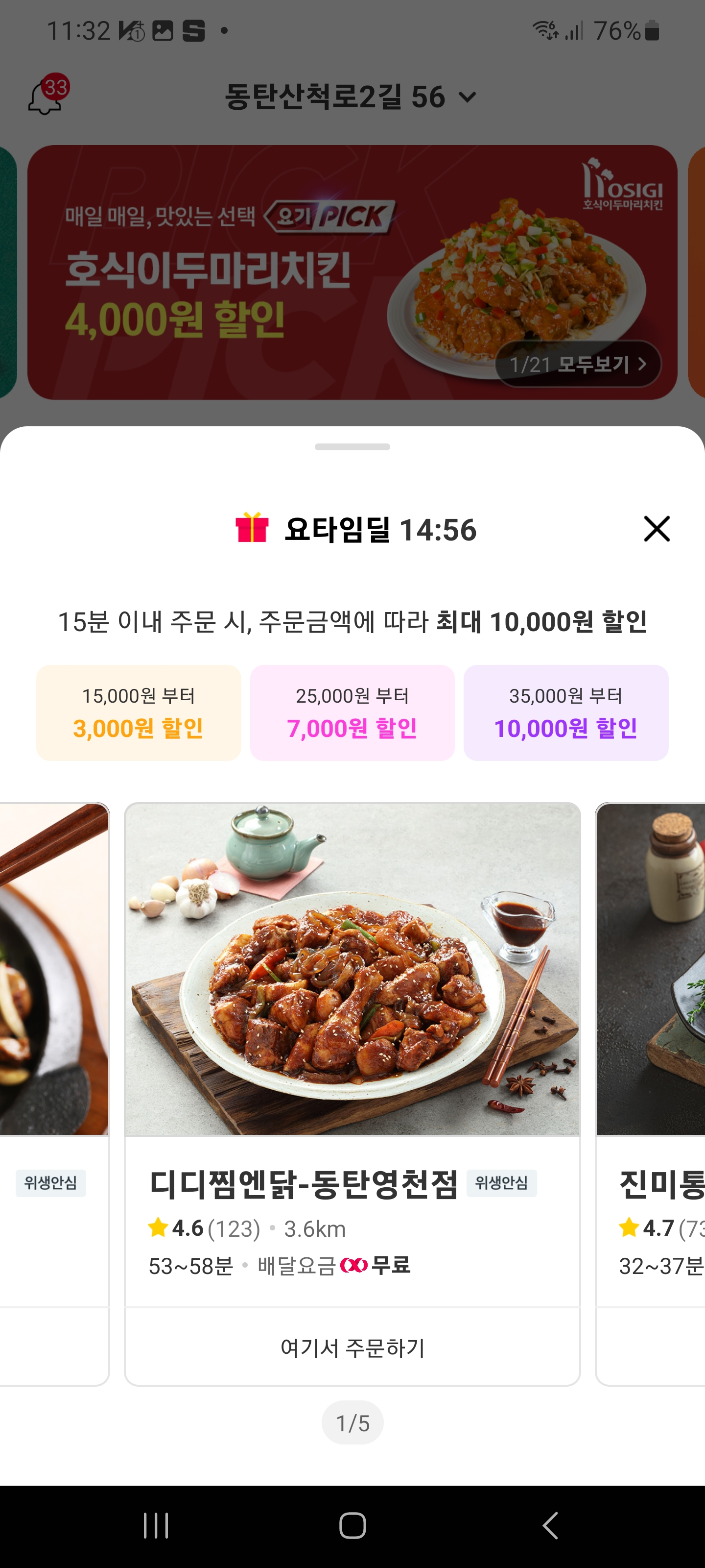 배달비는 3400원인데 쿠폰은 5000원을 지원하는 경우가 있다.