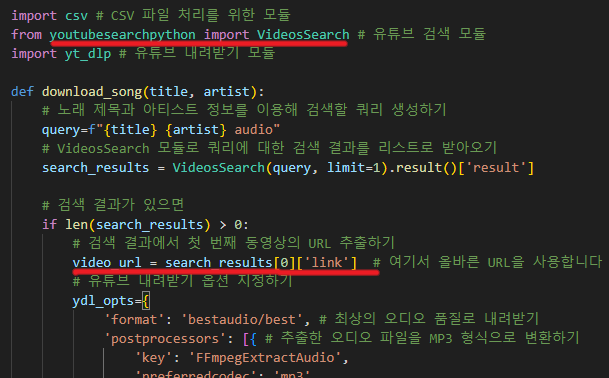 from youtubesearchpython 부분과 url 부분.