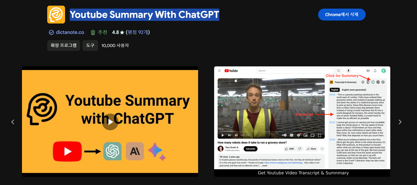 Youtube Summary With ChatGPT - Chrome 웹 스토어