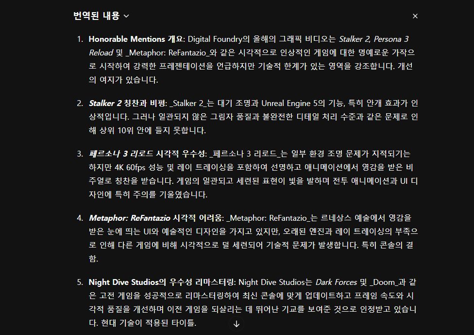 테스트 영상은 자주 보는 Digital Foundry 채널의 2024년 최고 그래픽 게임 관련 영상이다.