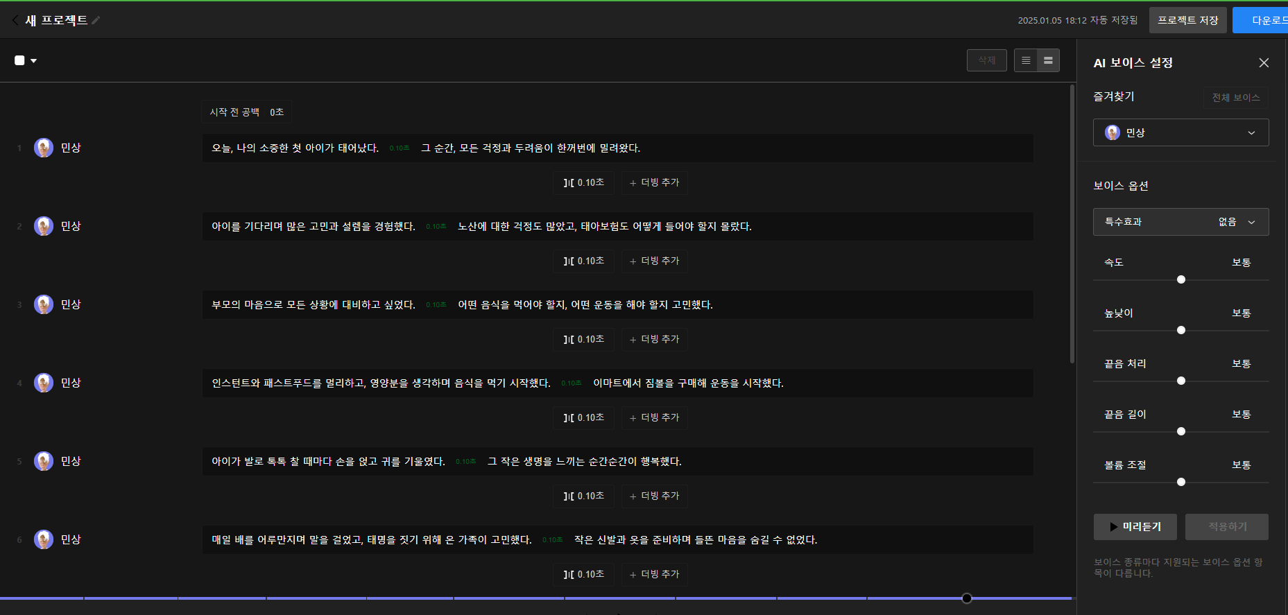 ai보이스는 기본적으로 4개가 있던데. 성인남녀, 아이남녀.