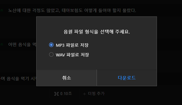 자잘한 테스트는 안하고 기본값으로 진행해서 10개의 scene에 맞는 텍스트를 입력해서 다운로드를 진행했다.