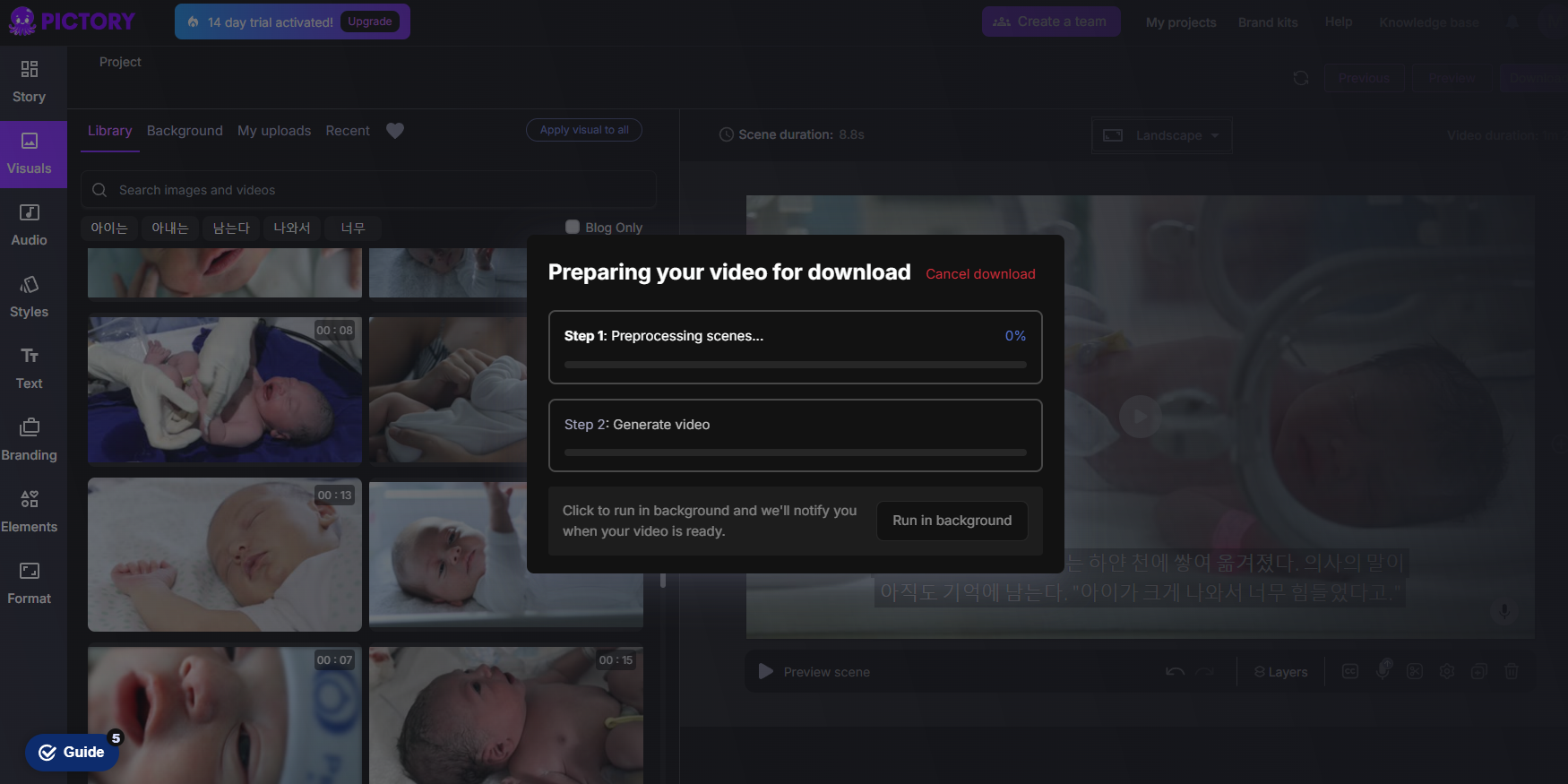 한 1~2분 정도면 영상을 뚝딱 만들어 준다.