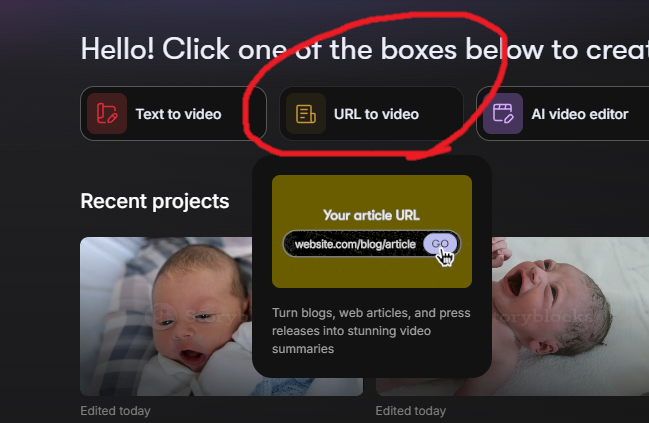 그 후 나의 경우 URL에 적어둔 글을 가지고 와서 영상을 만들거라 URL to video를 선택했다.