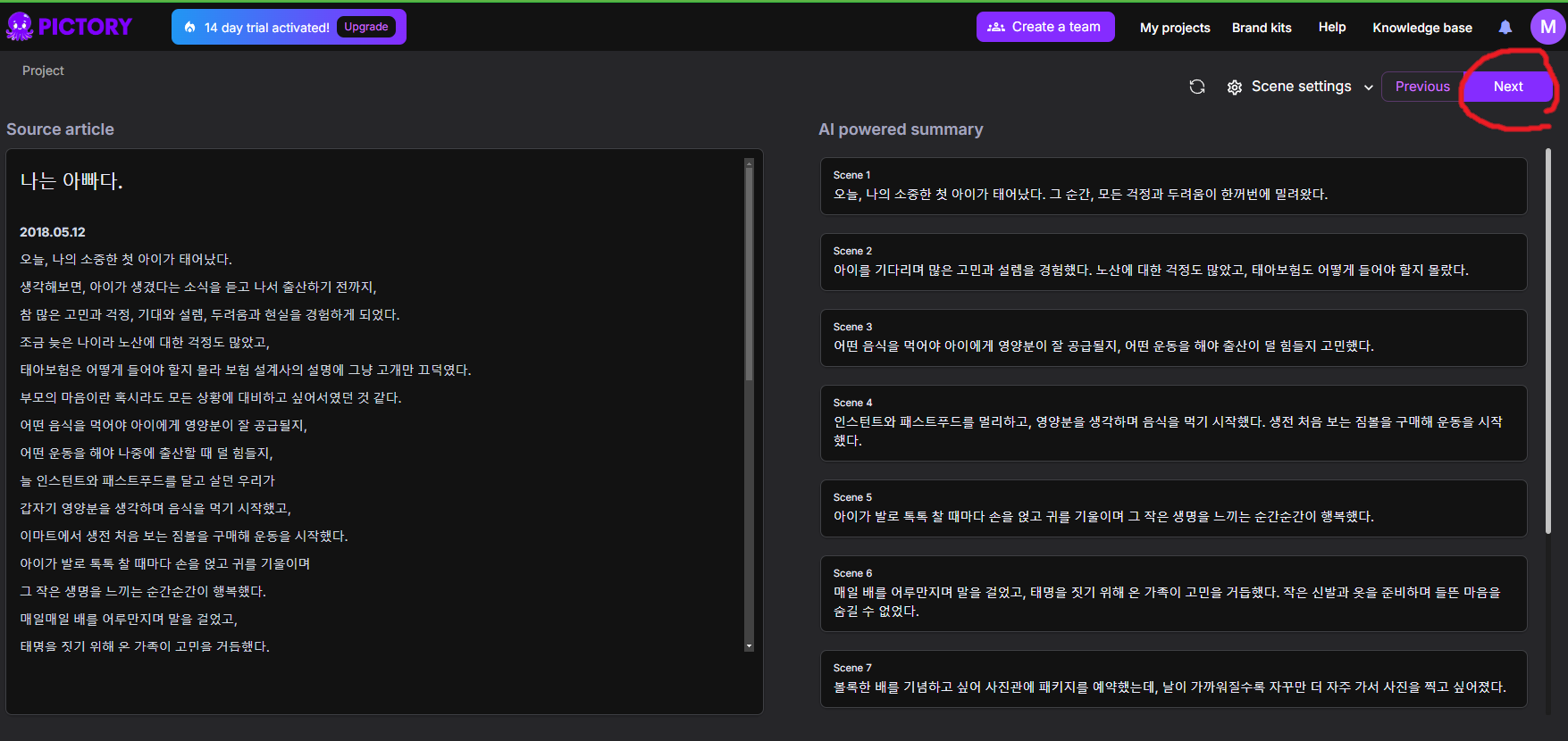 이제 여기서 Next를 눌러서 영상을 만들어 보자.