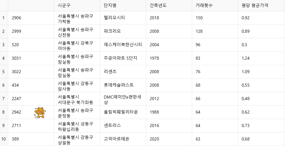 24년 하반기 서울에서 가장 거래량이 많았던 순위 8위.