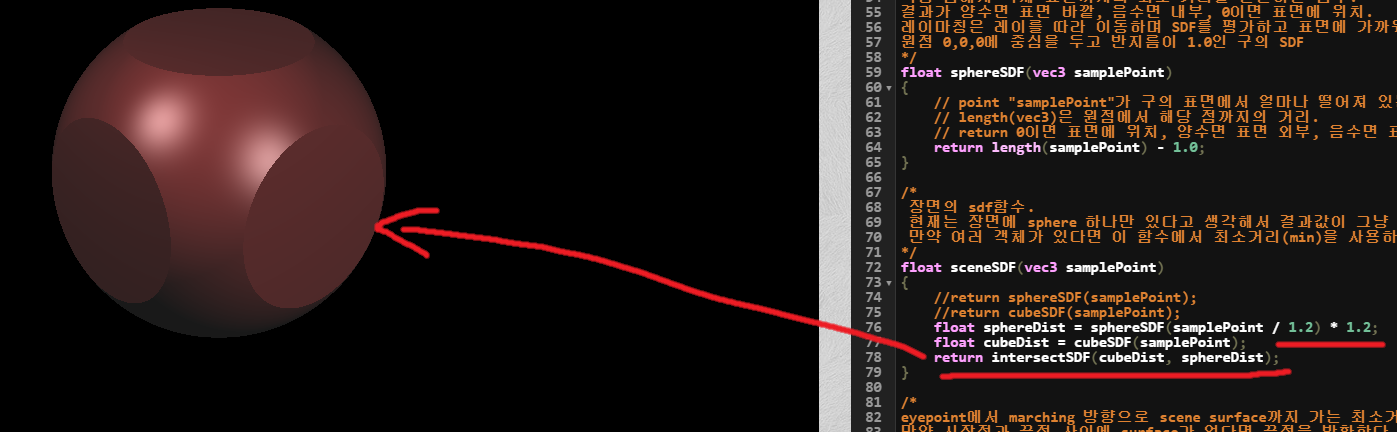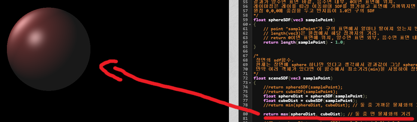 여기서 사용한 intersectSDF는 단순히 max 함수이며, 중요한 내용은 아니다.