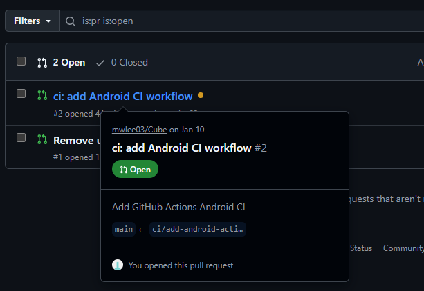 - 이제는 pr올리면 빌드/린트/테스트가 자동으로 검증한다