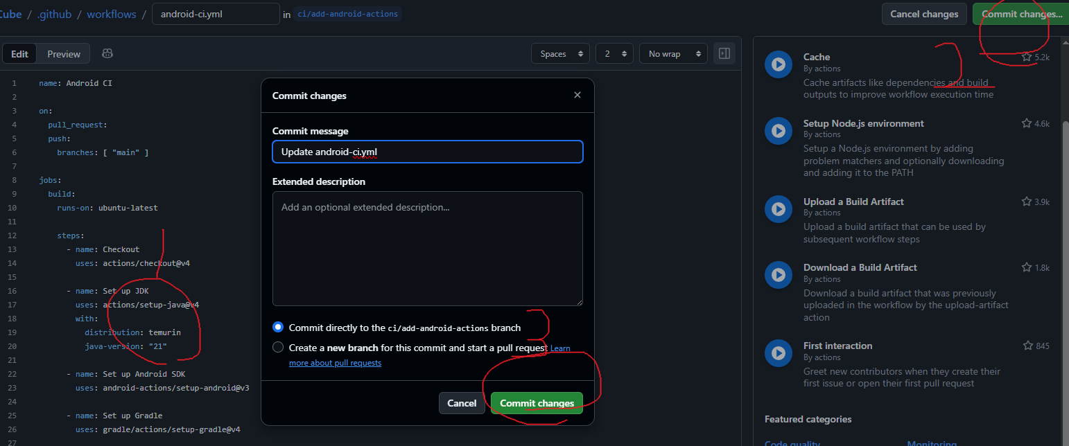 이제 안드로이드 스튜디오에서 commit and push를 하면 git에서 이렇게 체크를 해 준다. 정상빌드가 되는 아이인지.