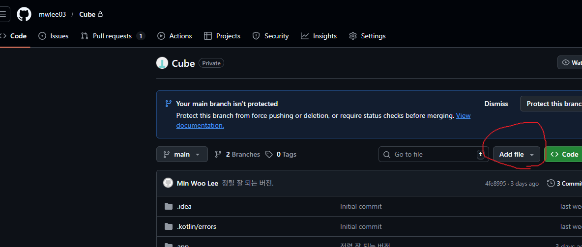 우선 내 안드로이드스튜디오는 main 브런치야.