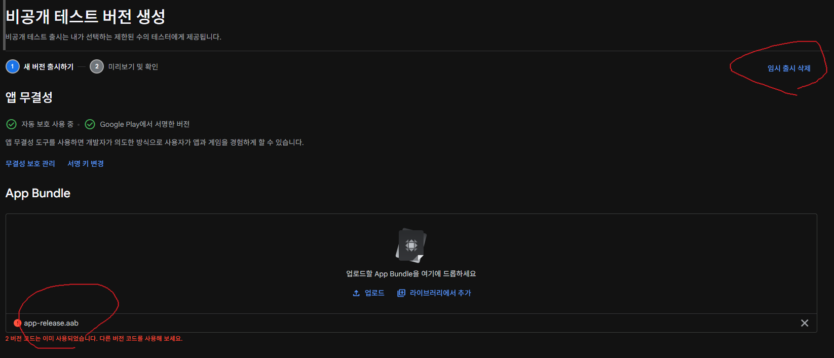 그제야 비공개 테스트에 올렸던 정상 파일이 받아진다.