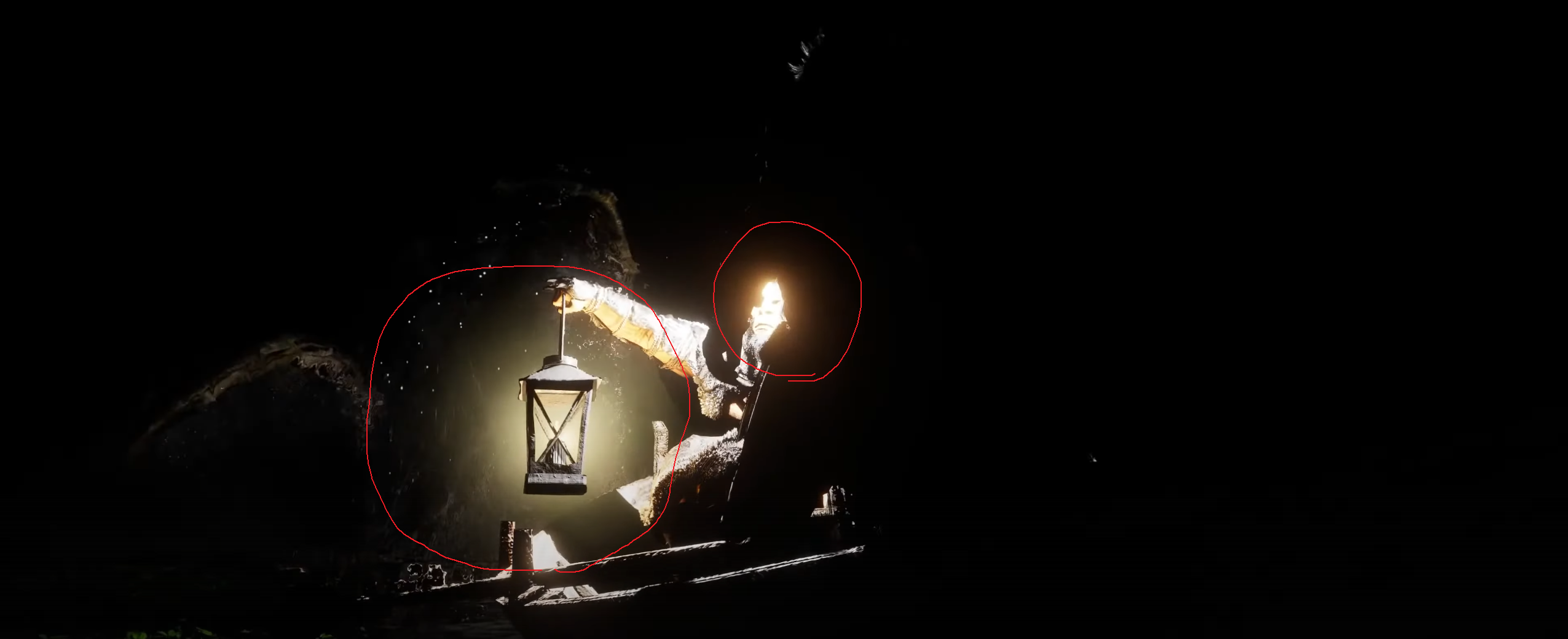 등에 의한 빛의 영역은 대략 빨간 동그라미 까지 인거 같은데