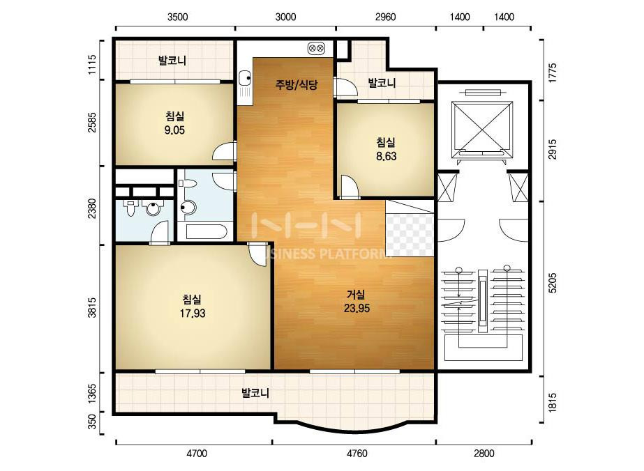 이런식으로 2bay에 방3, 화장실2개가 나온다.
