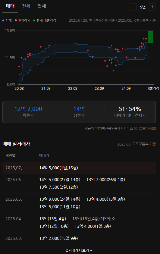 실거래가는 그런데 매물 가격을 보면 12억대부터 있다.