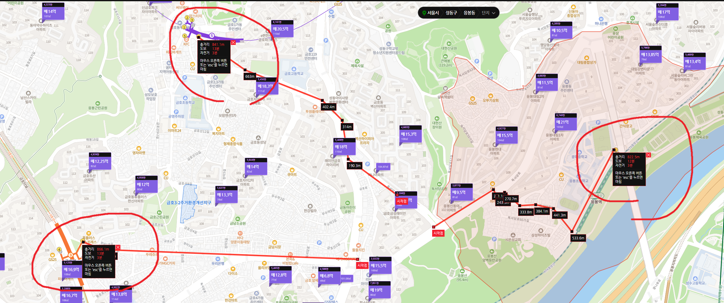 좌로 3호선 금호역이고 짧게 측정해도 13분이상은 걸릴듯.