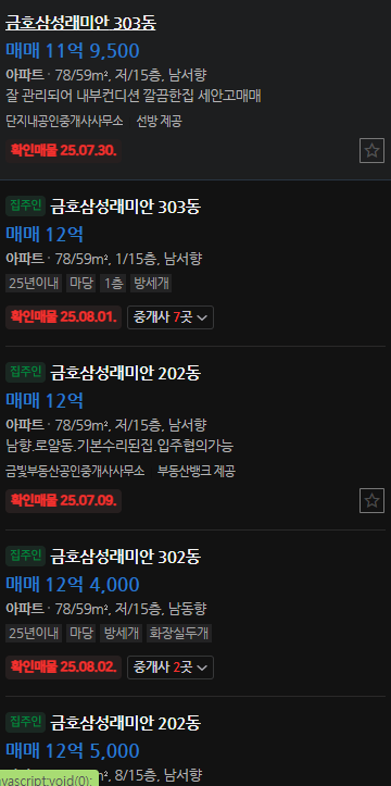 동에 따른 차별값과, 올수리 여부에 따른 추가금을 고려하면 차이가 좀 있긴 하겠지만