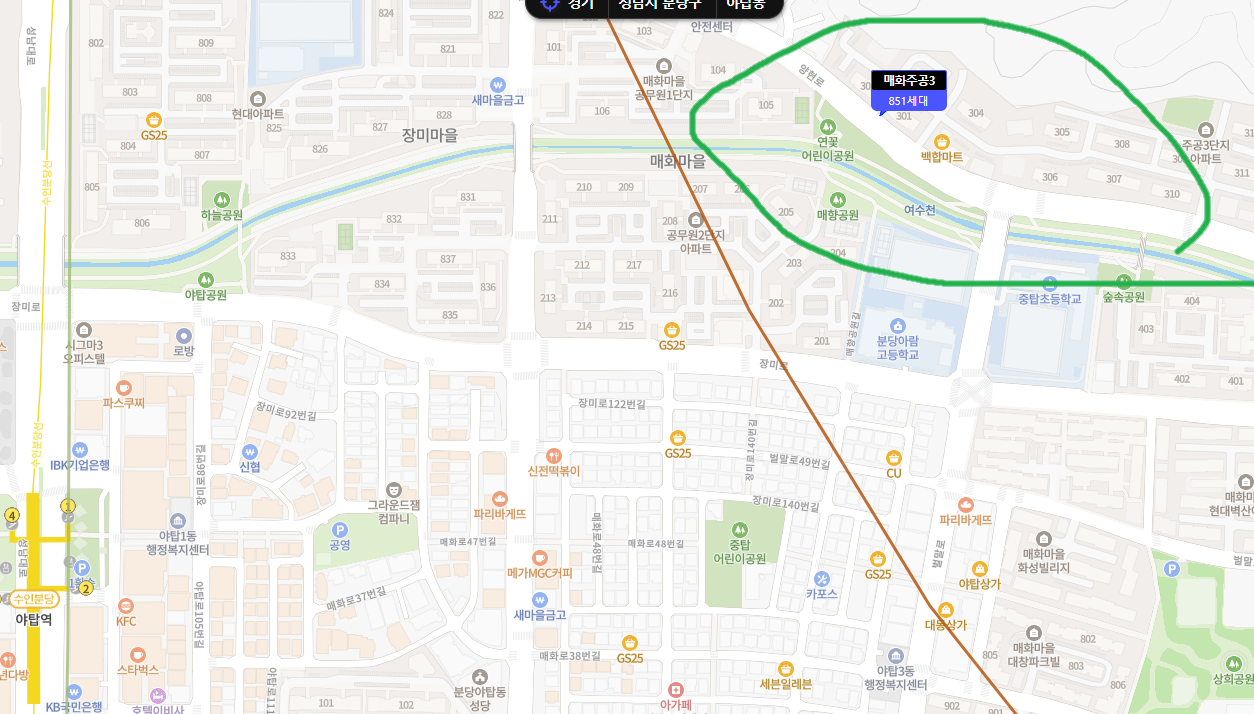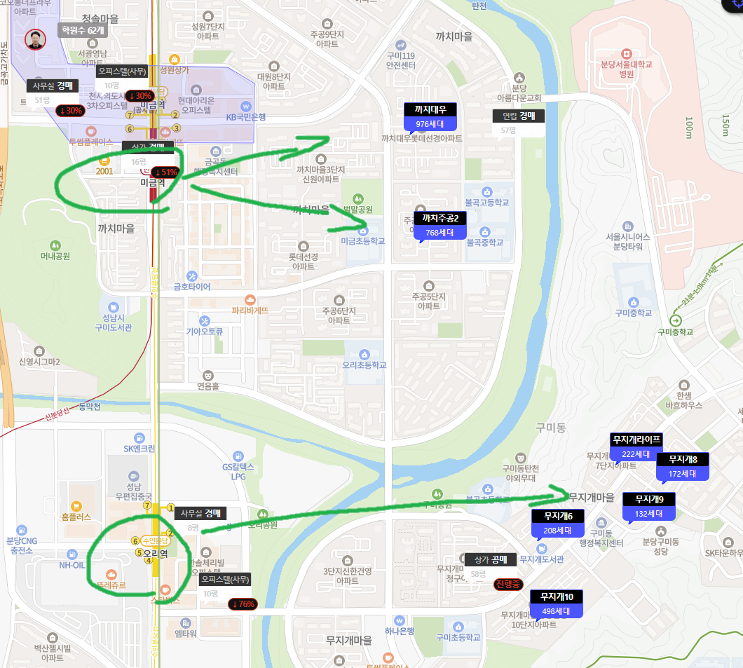 세대수가 다 소형단지고, 미금역 역시 사실 정자에서 아래쪽에 속해서 소외받고 있는 지역.