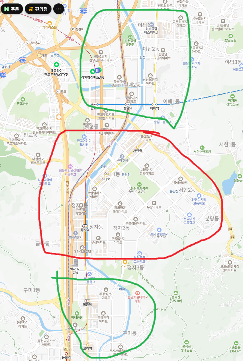 지금 상황에서는 정자, 수내 서현이라고 볼 수 있다.