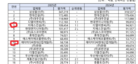 총 73,657개사 대상 평가 … 삼성물산(1위) 현대건설(2위) 대우건설(3위) 순, 8월 1일부터 입찰자격