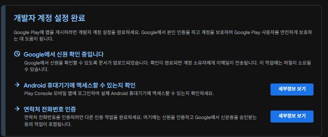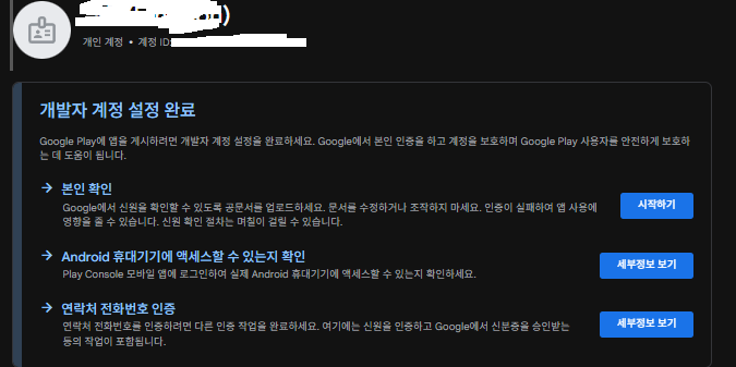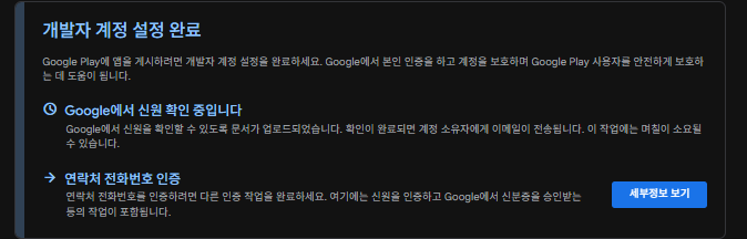 플레이 콘솔로 이동을 누르면 이제 전화번호를 인증해야 한다.