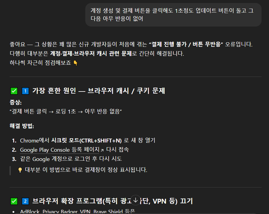 그리고 나서 계속 진행하다가 거의 마지막즘 일거 같은데 "계정 생성 및 결제"버튼을 눌러도 반응이 없다.