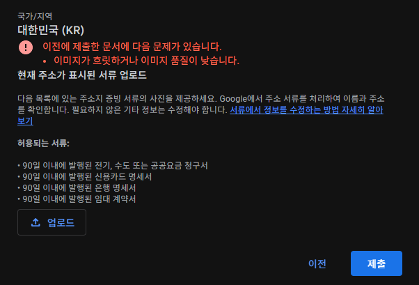 집주소는 그러려니 하겠는데 서류도 첨부해야 한다.