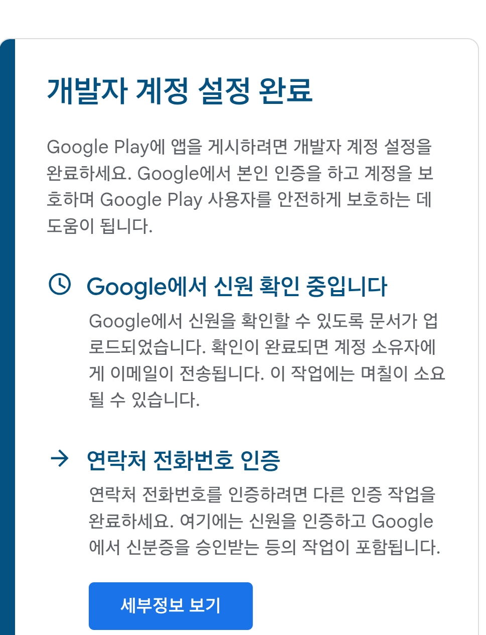 개발은 다합쳐서 10시간도 안걸렸는데 개발자 계정만드는데 몇일을 걸리는거야.....