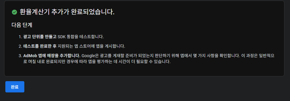 완료 누르면 어떻게 되는거지? 바로 앱이 구글에 추가되는건가?