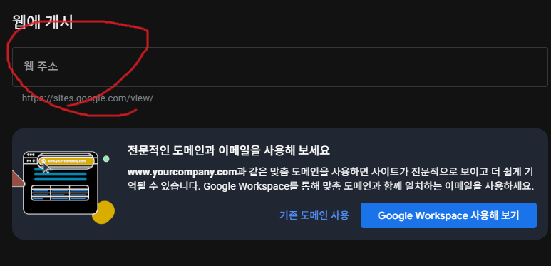 웹사이트는 그냥 구글사이트로 만들었는데 이름만 입력하면 된다.