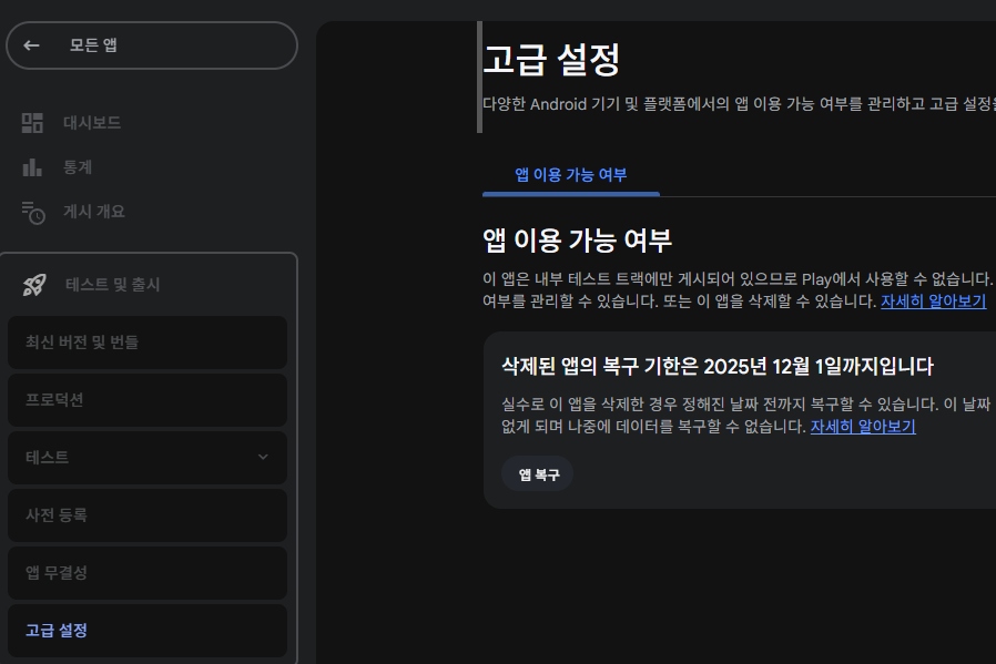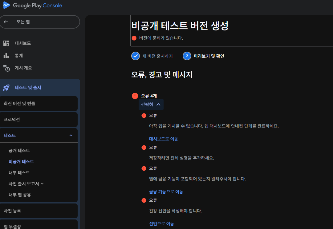 기존거가 내부테스트 등록이 되어 있는데 이거때문에 등록이 안됨.