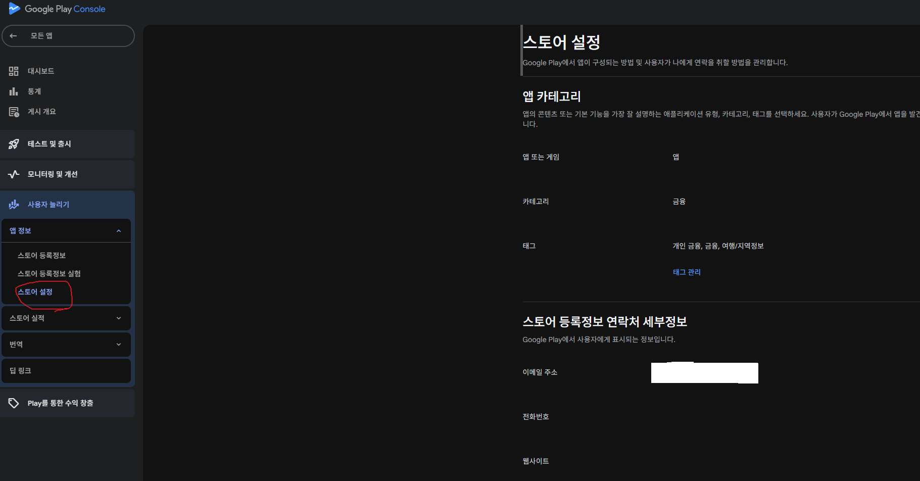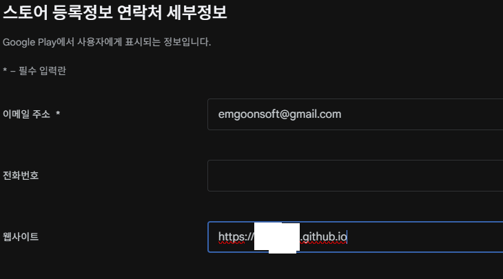 5. 플레이 콘솔에 스토어 정보쪽에 웹사이트 입력하기.