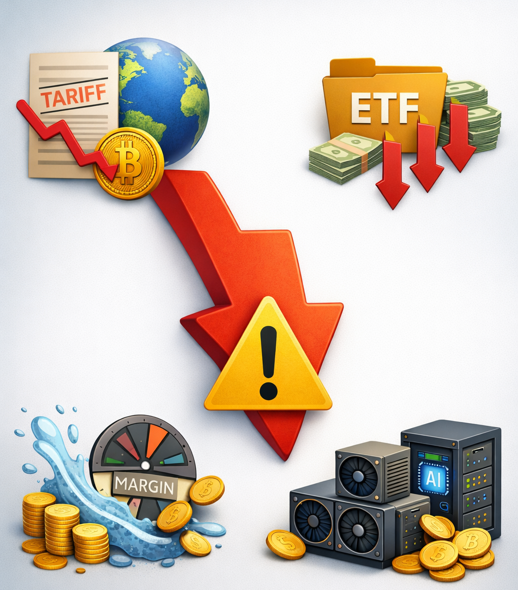 관세 재격화, 위험회피 심리, ETF 자금 유출이 동시에 작동할 때 레버리지 포지션이 약한 고리부터